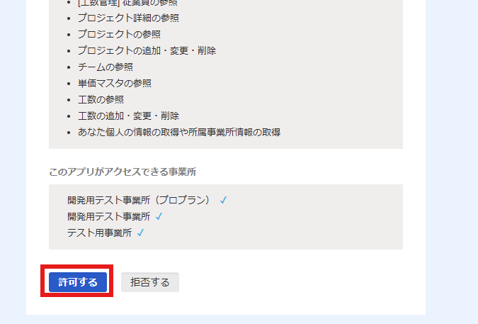 下へスクロールし「許可する」をクリックしましょう。