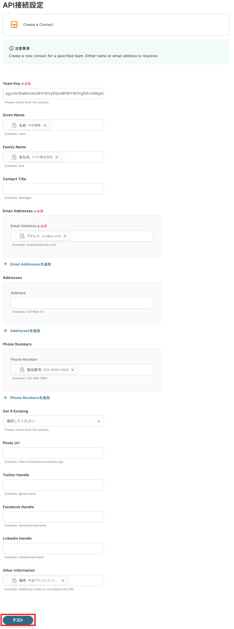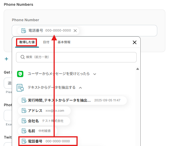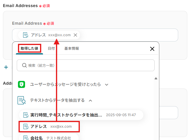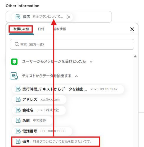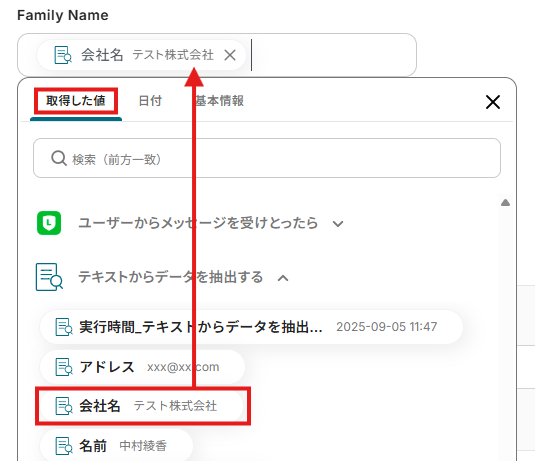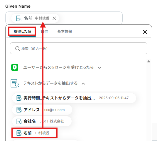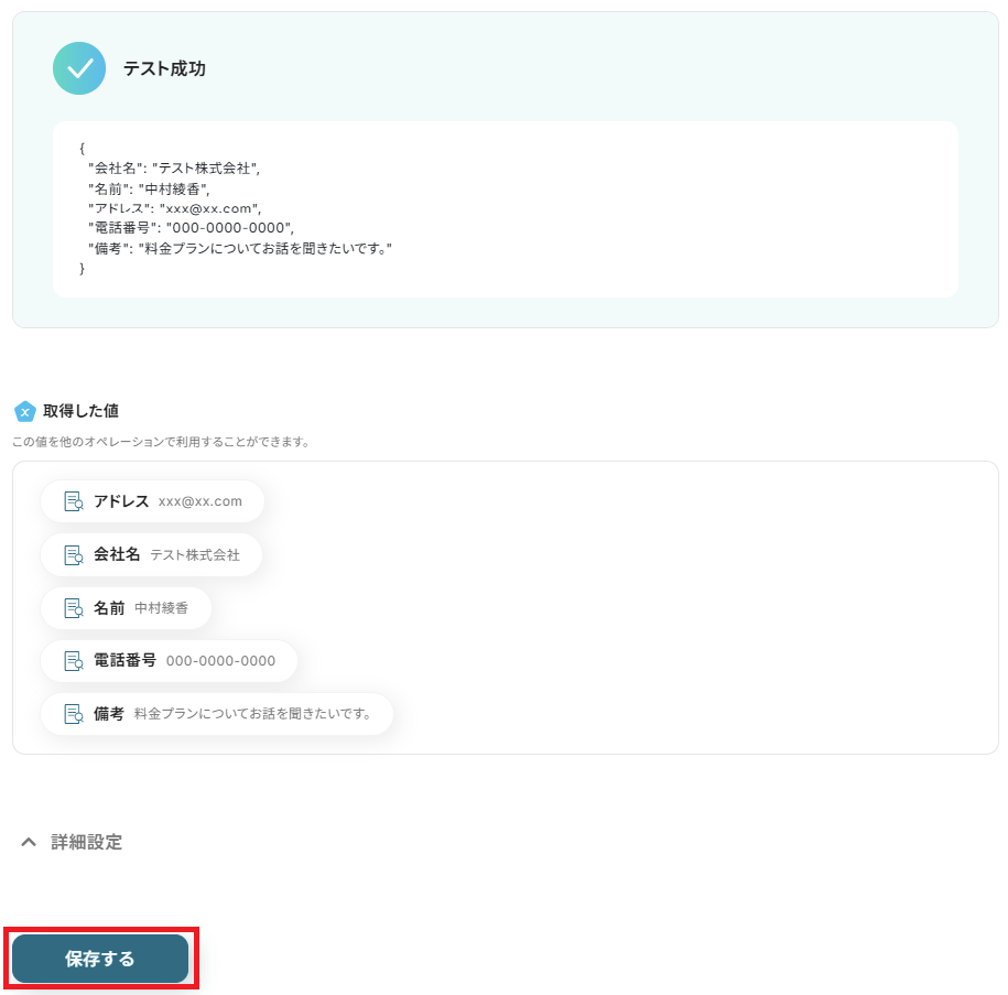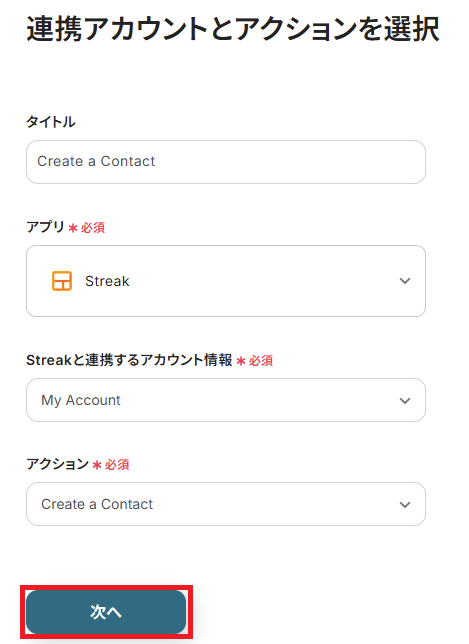取得した値について、詳しくはこちらをご参照ください。なお、この取得した値はこの後の設定で活用でき、Streakに自動登録可能です!