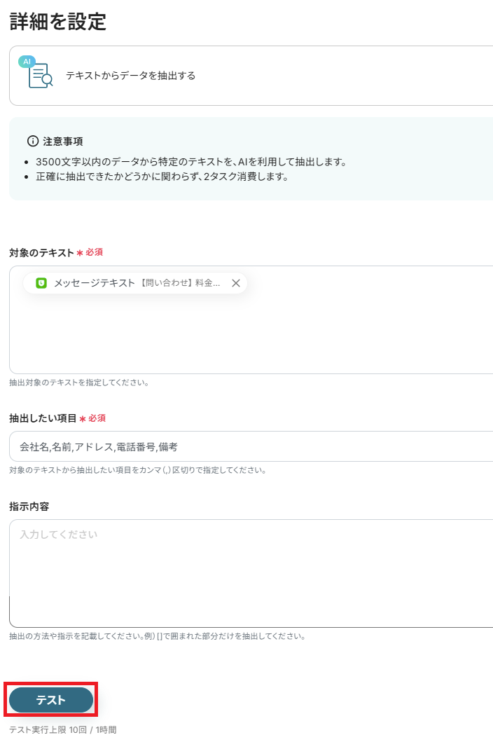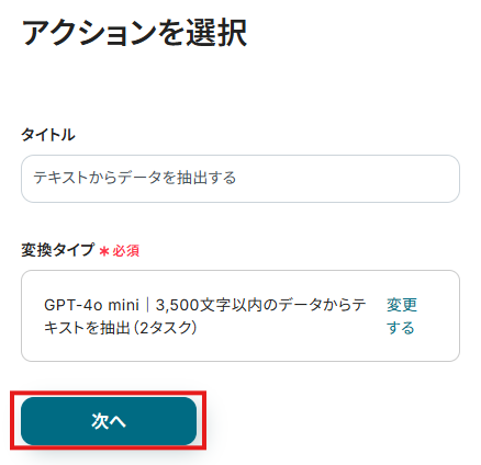ステップ4:「テキストからデータを抽出する」の設定