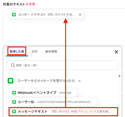 ステップ3:「ユーザーからメッセージを受けとったら」の設定