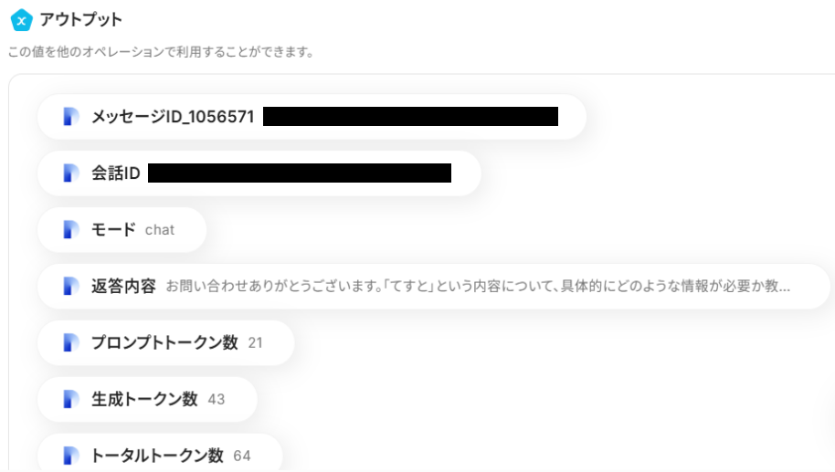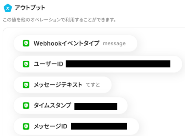 テストに成功すると、下記画像のようにアウトプットが表示されます。