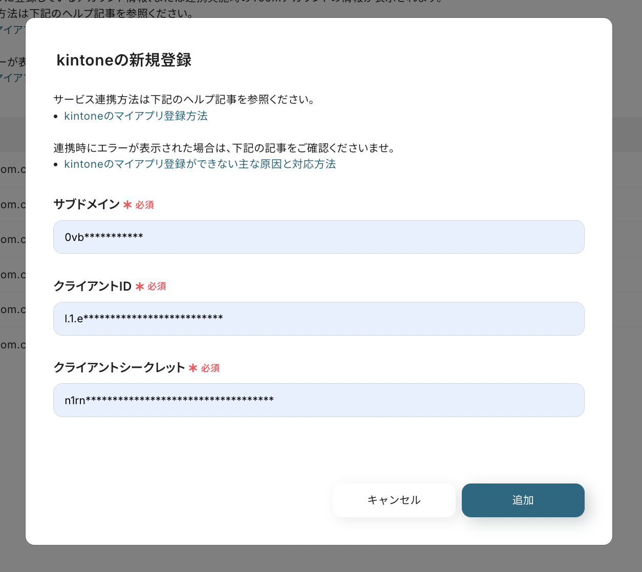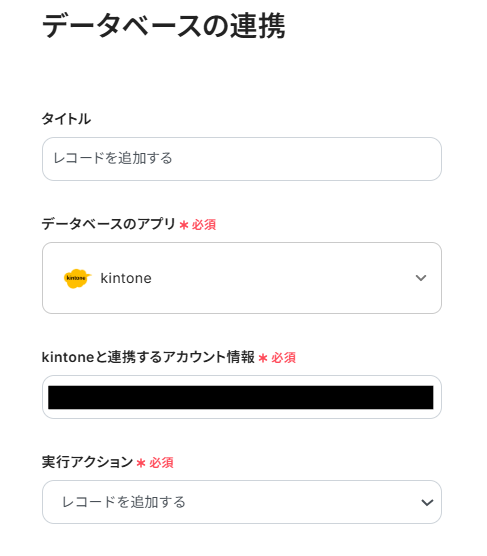 - 「kintoneと連携するアカウント情報」→アカウントに相違がないか確認