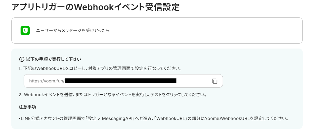 設定方法はLINE公式アカウントでWebhookイベントを設定する方法をご覧ください。