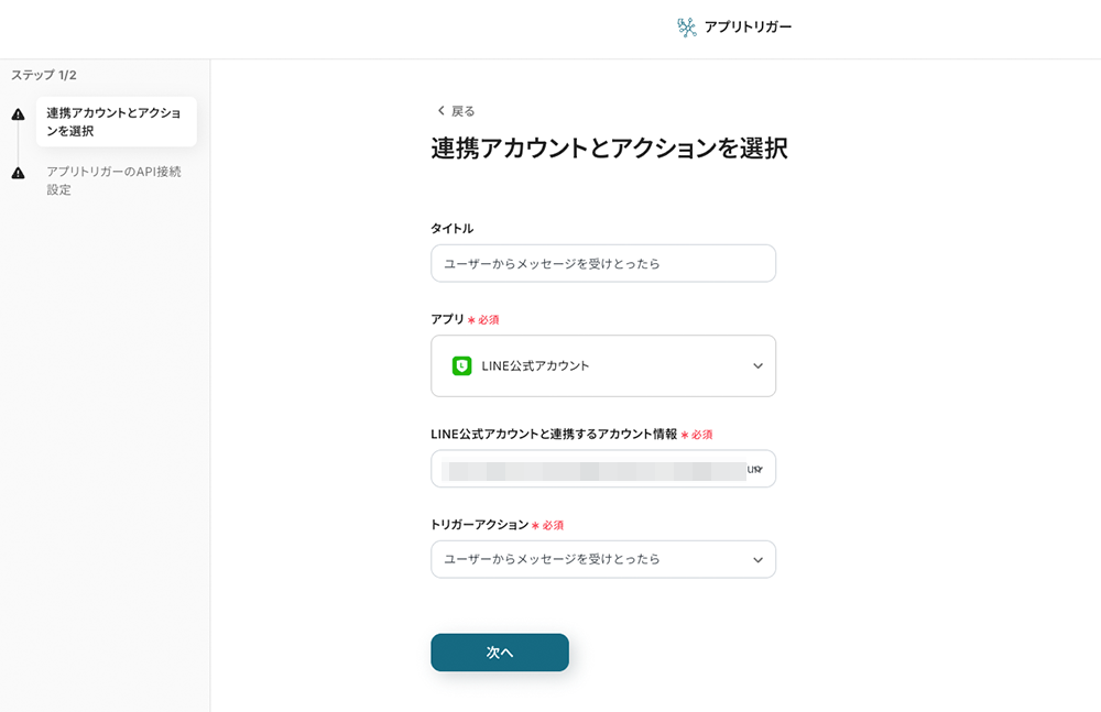 検索結果からアプリ名を選択すると、連携に必要な値を入力する画面に遷移します。