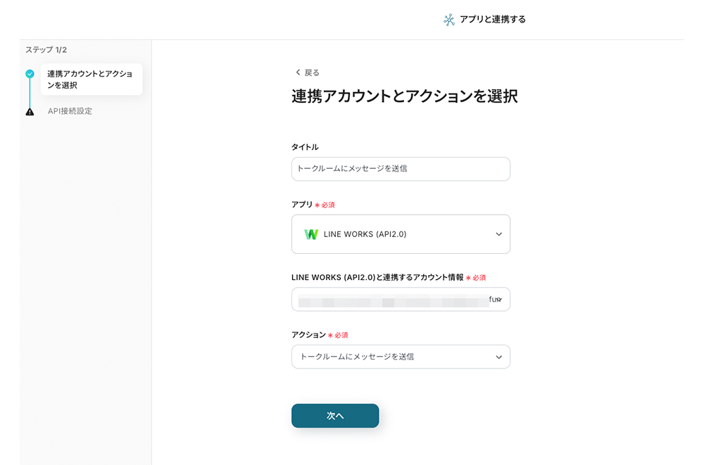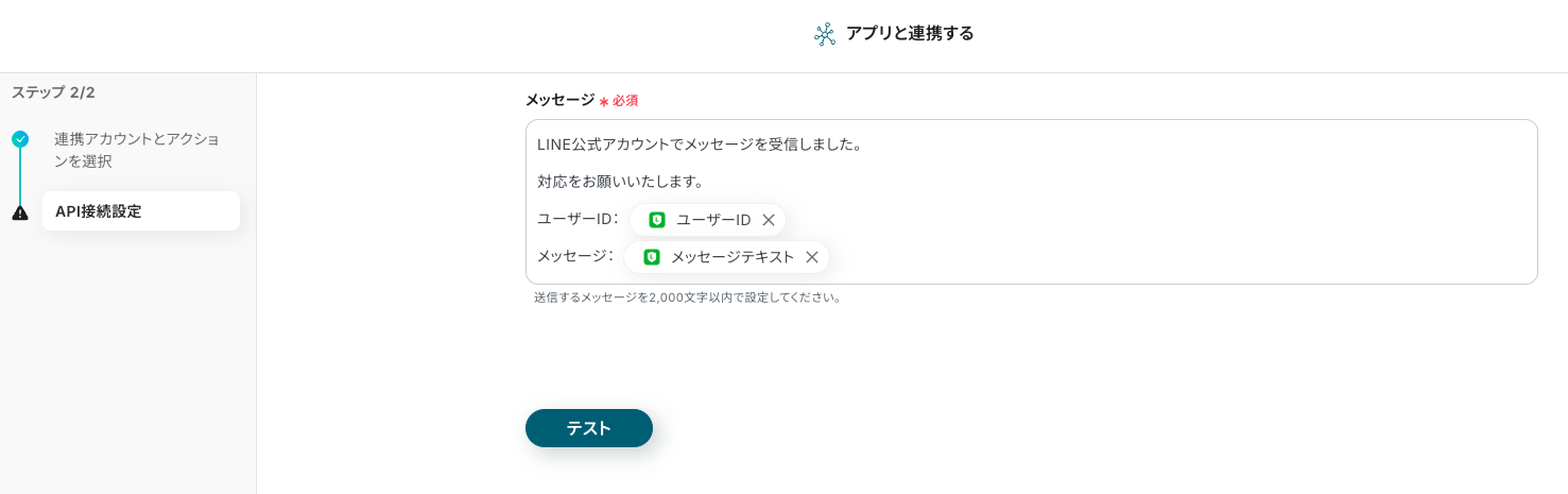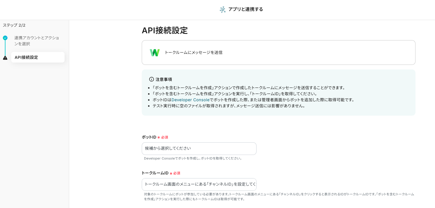 ステップ4:アプリと連携する「トークルームにメッセージを送信」