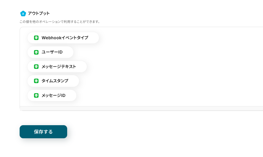 この項目と値をYoomでは「アウトプット」と定義しています。