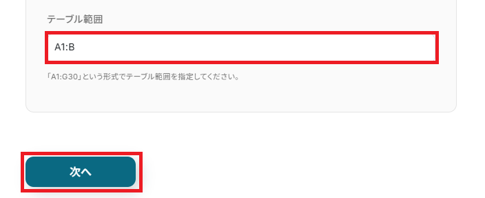 「テーブル範囲」は、作成したシートに合わせて直接入力します。