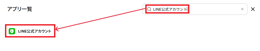 アプリ一覧の検索窓からLINE公式アカウントの連携を検索し、クリックします。