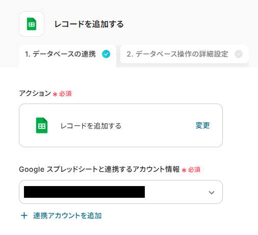 - Google スプレッドシートの「レコードを追加する」アクションで、データを記録したい任意のファイルIDおよびシート名を設定してください。