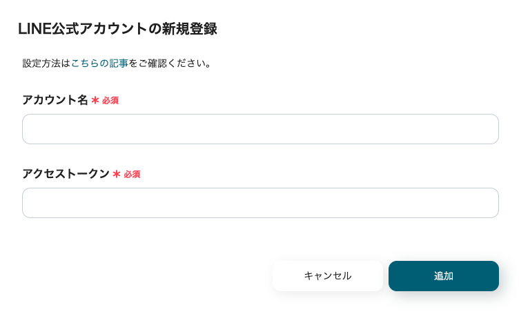 検索結果からLINE公式アカウントを選択します。事前準備で得た値を入力する画面が表示されます。