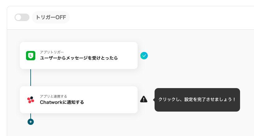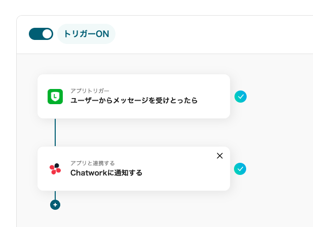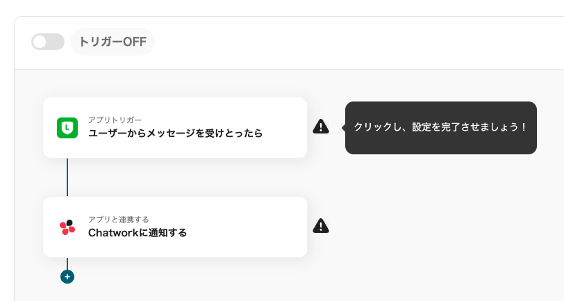 LINE公式アカウントでユーザーからメッセージが届いたらChatworkに通知するフローです。