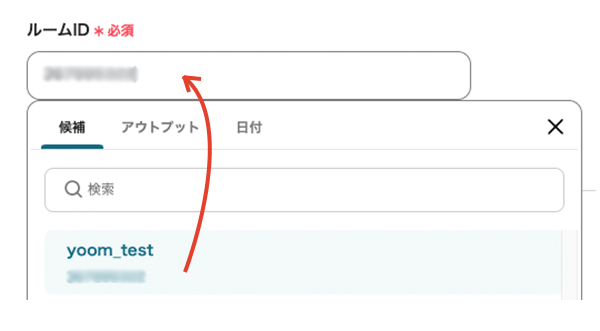 編集欄をクリックするとプルダウンが開き、候補のルームが表示されます。該当のルームを選ぶと、ID情報を引用可能です。