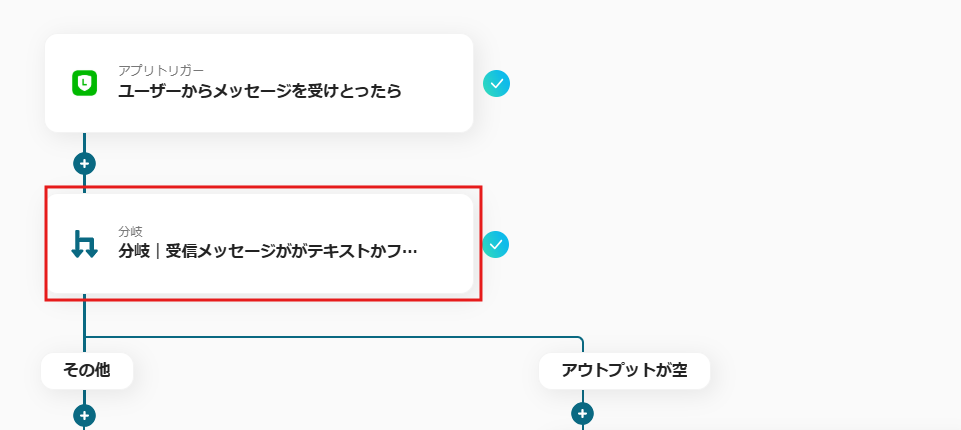 - 分岐はミニプラン以上のプランでご利用いただける機能(オペレーション)となっております。フリープランの場合は設定しているフローボットのオペレーションはエラーとなりますので、ご注意ください。