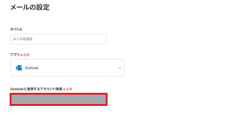メールの設定画面が表示されるので、今回使用するOutlookのアカウントで間違いないことを確認しましょう。