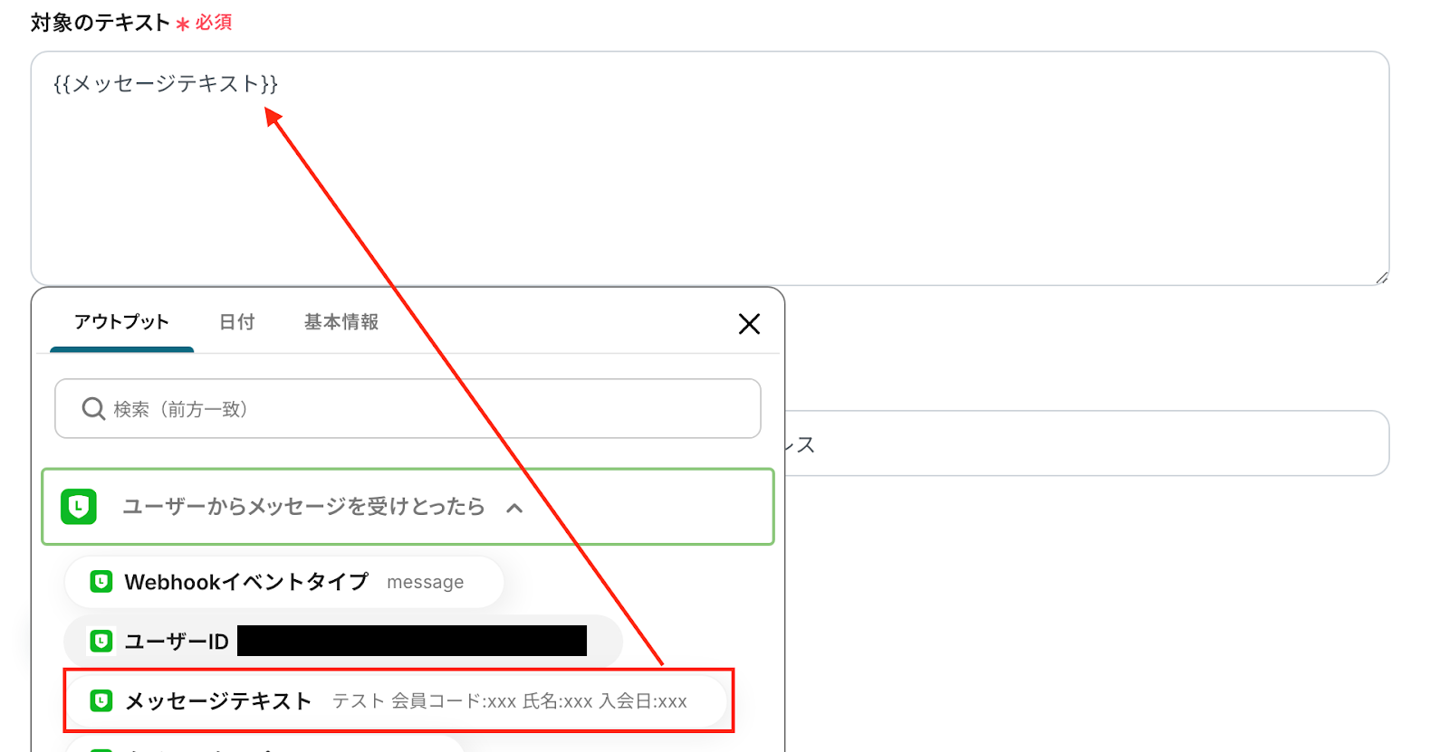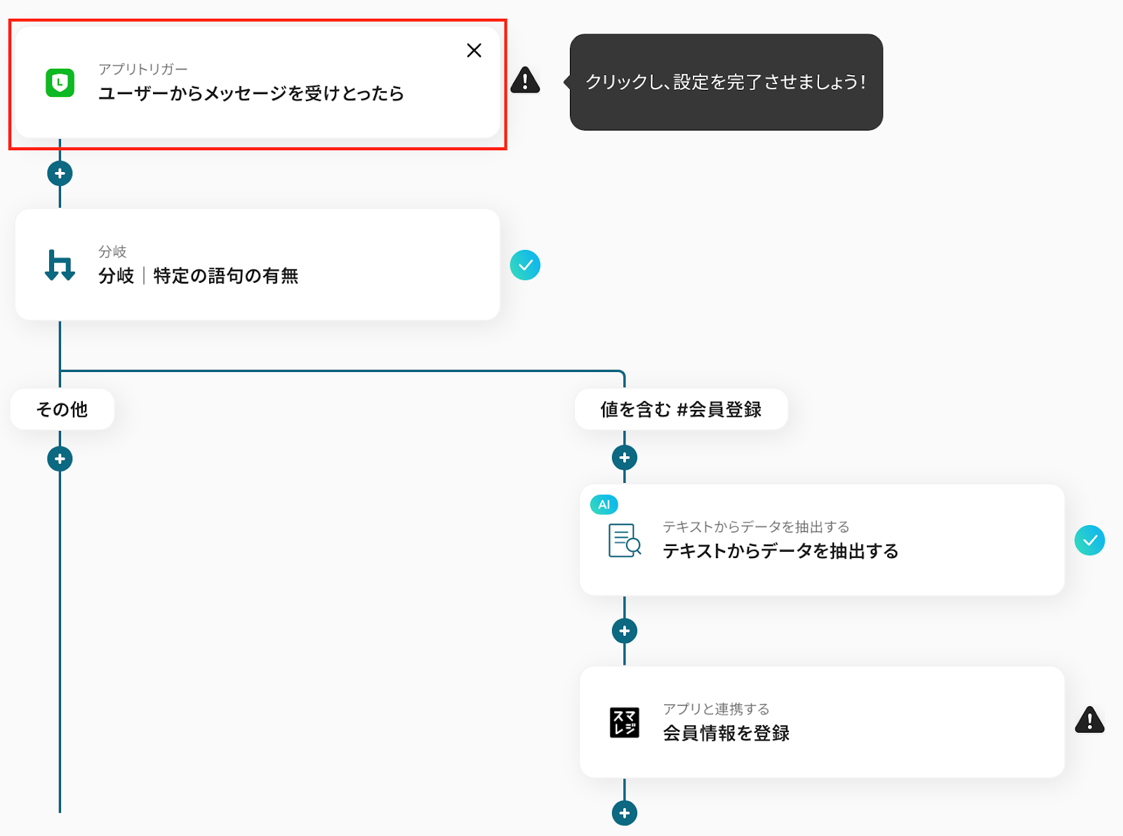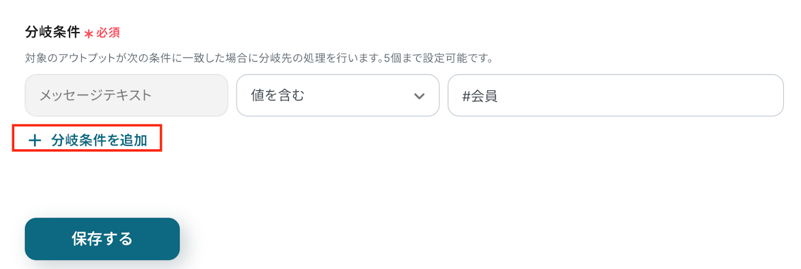 今回は、【#会員】というキーワードを含むメッセージを検知する設定を行います。