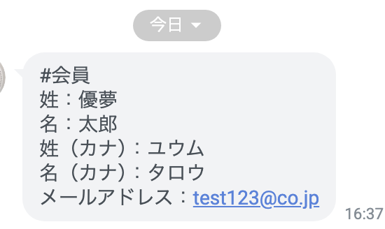 テストを実行する前に、LINE公式アカウントにテスト用にメッセージを投稿しましょう。