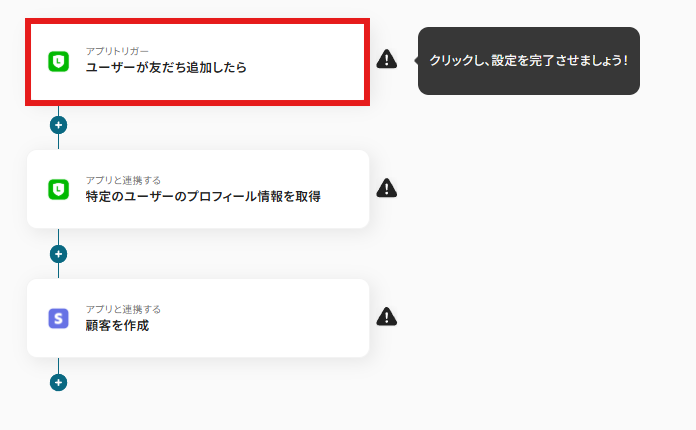 YoomのAPIで、LINE公式アカウントで友達追加されたことを検知し、今回の自動化のトリガーにするための設定を行います。