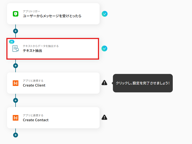 Harvestに登録するための情報をLINE公式アカウントのメッセージ内容から抽出するための設定を行います。