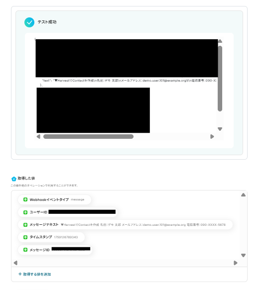 このテンプレートを利用すれば、LINE公式アカウントの投稿内容を自動で取得し、Harvestに新しいコンタクトとして登録するため、リード情報の登録漏れや入力ミスを防ぎ、スムーズなアプローチが可能になります。