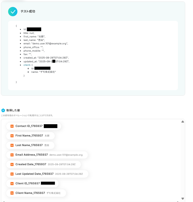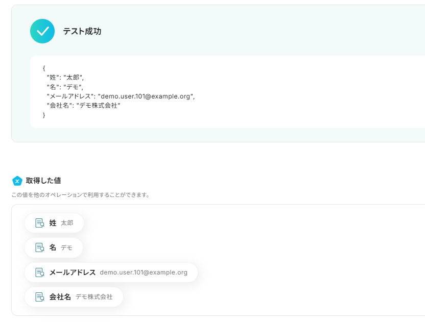 設定ができたら連携テストを行います。テストボタンをクリックし、実際にデータの抽出ができているかを確認しましょう。