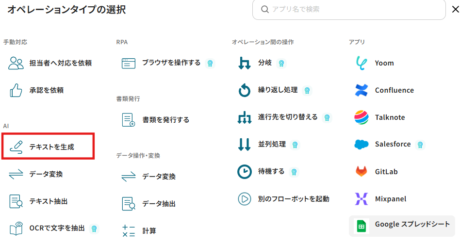 ・OCRまたは音声を文字起こしするAIオペレーションはチームプラン・サクセスプランでのみご利用いただける機能となっております。フリープラン・ミニプランの場合は設定しているフローボットのオペレーションはエラーとなりますので、ご注意ください。