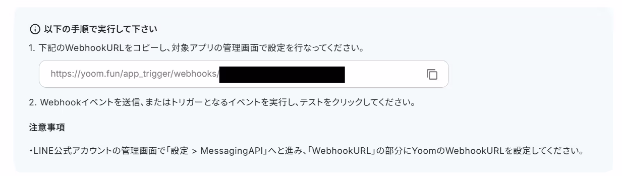 次に進んだら、Webhookを設定しましょう。Webhookを設定することでリアルタイムでメッセージが受信できるようになります。