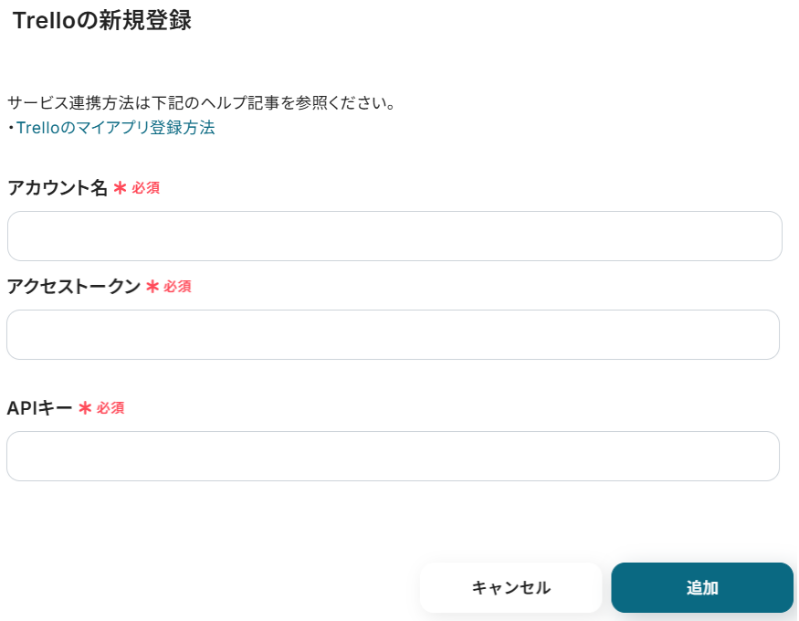 Trelloのマイアプリ登録には下記項目の入力が必要です。