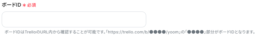 - ボードID:先ほど作成したTrelloのボードを開き、URLよりボードIDを確認ください。