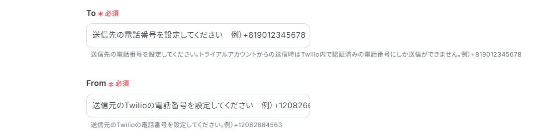 Account SID、Auth Tokenはこちらの記事を参考にしてみてください。