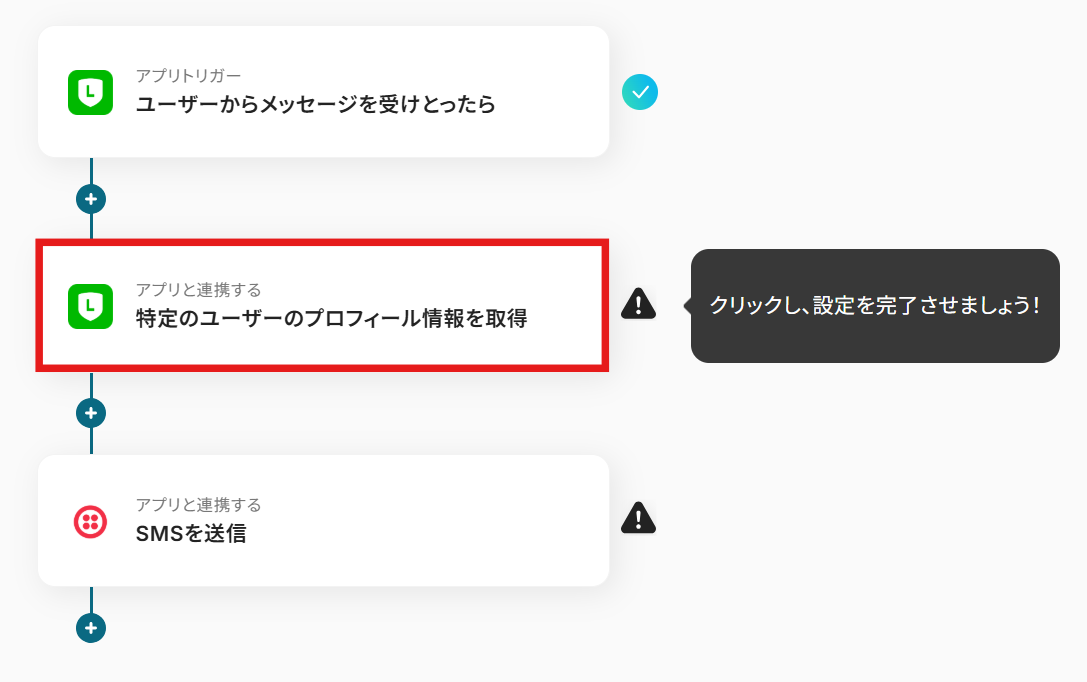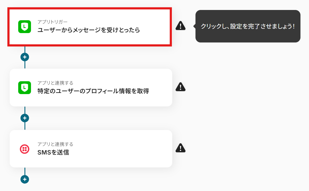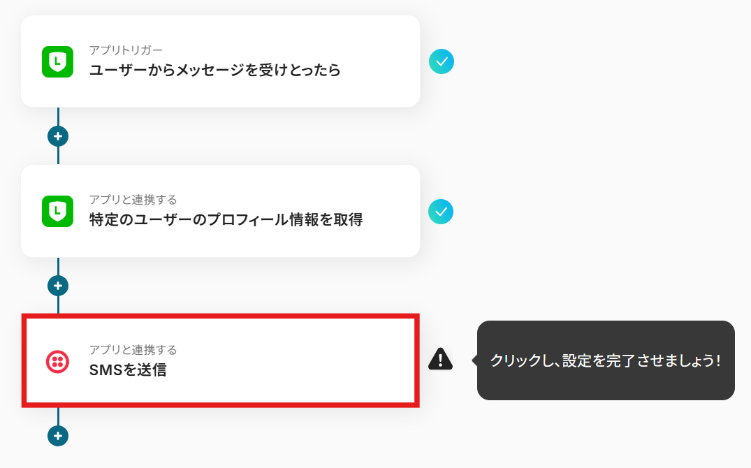 これで、【LINEで受信したメッセージをTwilioでSMS送信する】というフローが完成しました。