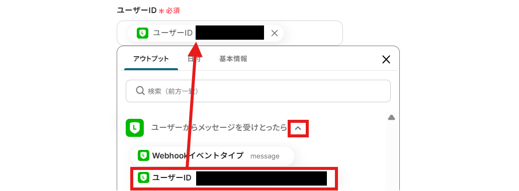 すると、アウトプットが表示されるので、その中からユーザーIDを選びましょう。