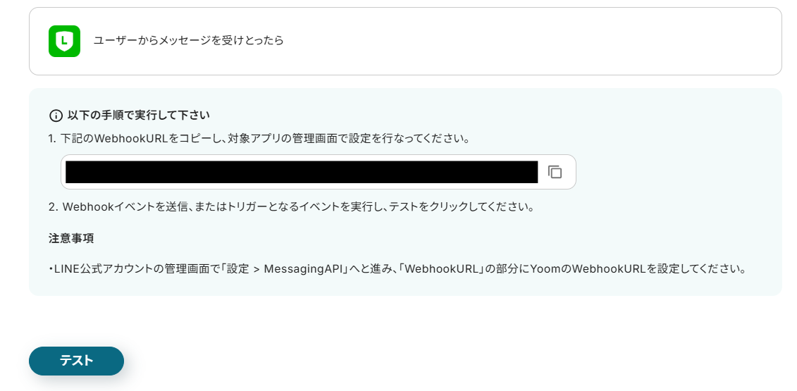 WebhookURLをコピーし、管理画面で設定を行ってください。