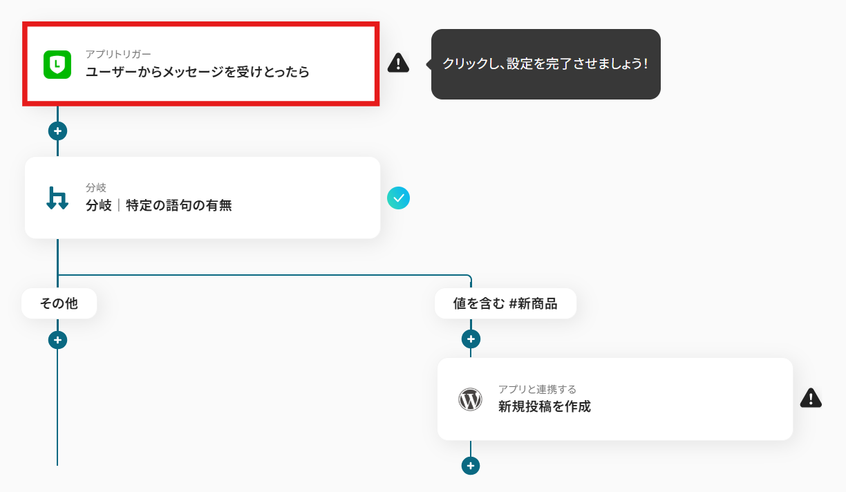 それでは、さっそく実際にLINE公式アカウントとWordPressを連携したフローを作成してみましょう!