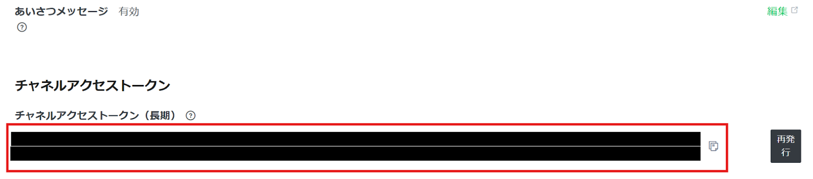 3.下にスクロールしていくと、チャネルアクセストークンが表示されます。