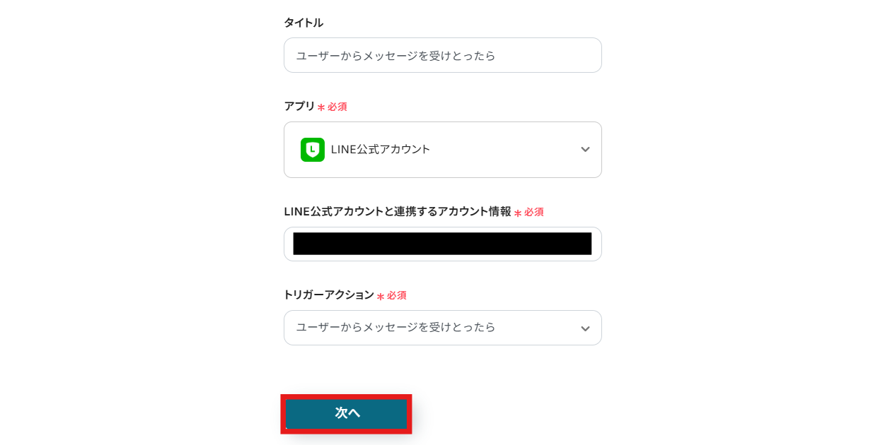 ステップ3:LINE公式アカウントでユーザーからメッセージを受け取ったら起動するトリガーの設定