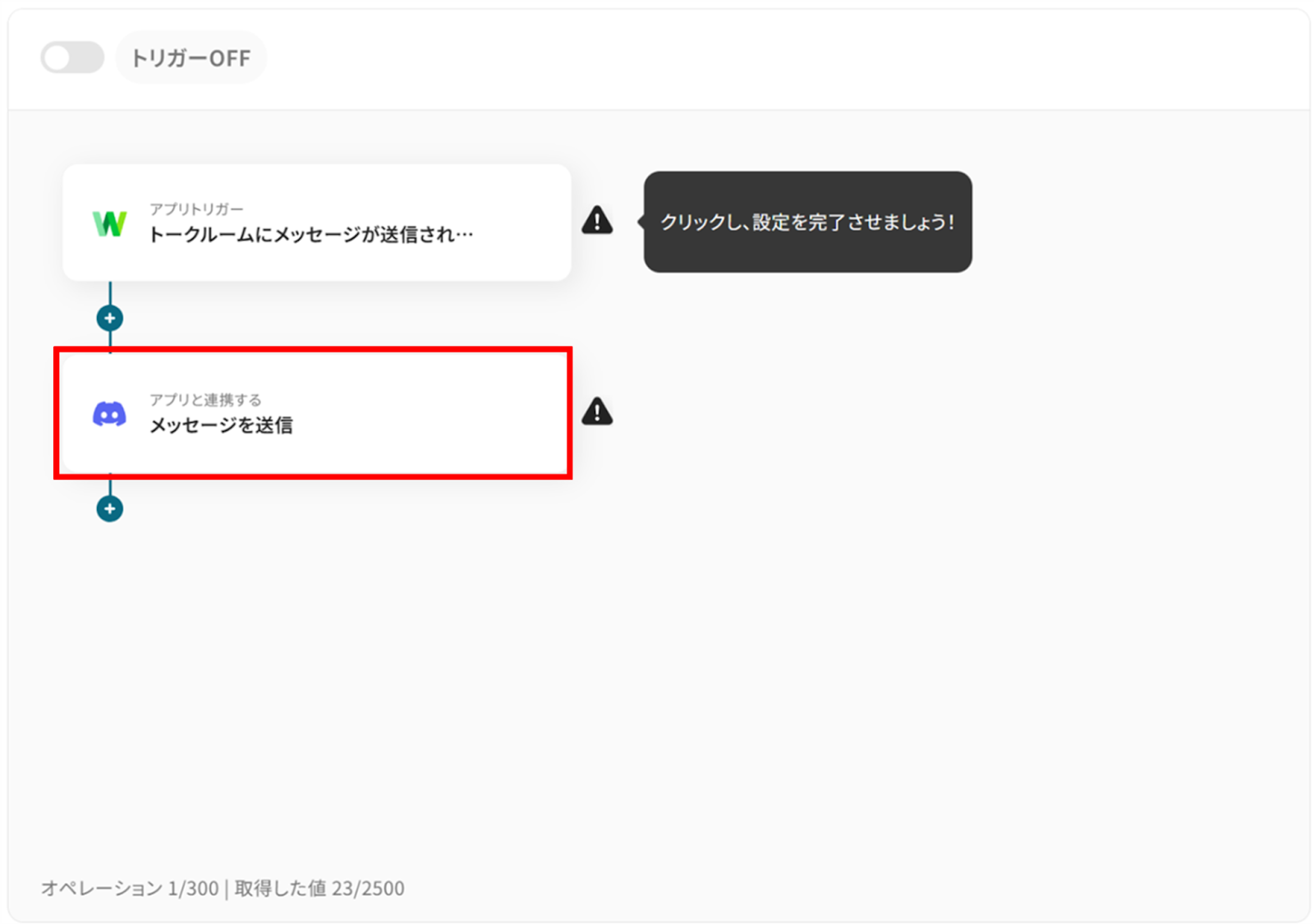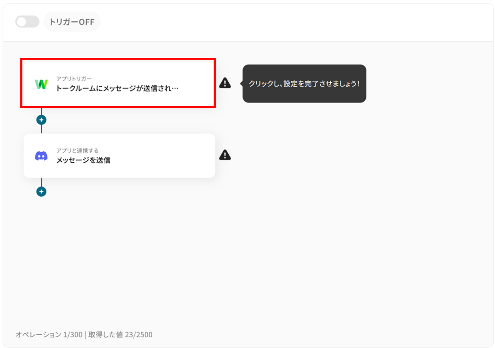 設定が完了すると以下のようなメニューが表示されるので、トリガーをONにします。