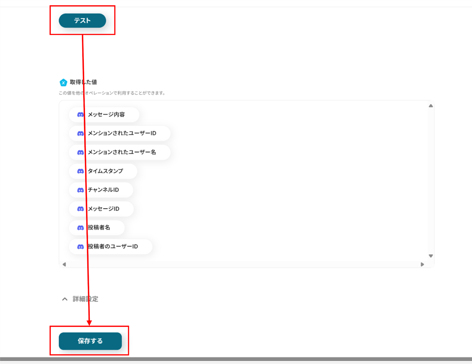 入力が終わったら「テスト」をクリックし、エラーが発生しなければ「保存する」をクリックします。