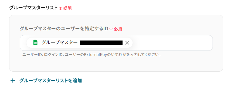 グループマスターリストを設定します。 先ほどと同様に取得した値を活用して設定してください。