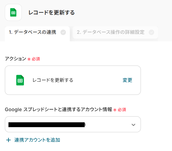 ステップ5:Google スプレッドシートのレコードを更新する設定