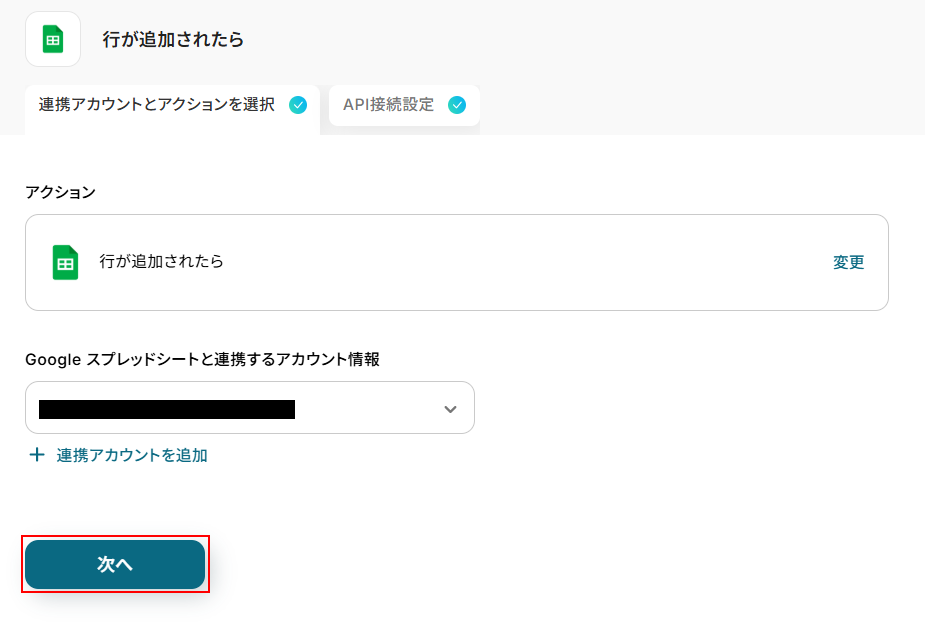 ステップ3:Google スプレッドシートに行が追加された際の設定