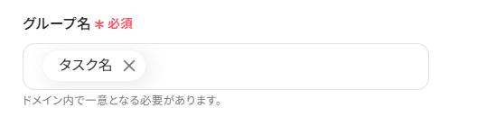 グループ名を設定します。 以下のように取得した値が事前に設定されていることがありますが、項目名のみが表示されている場合は正しく設定できていません。