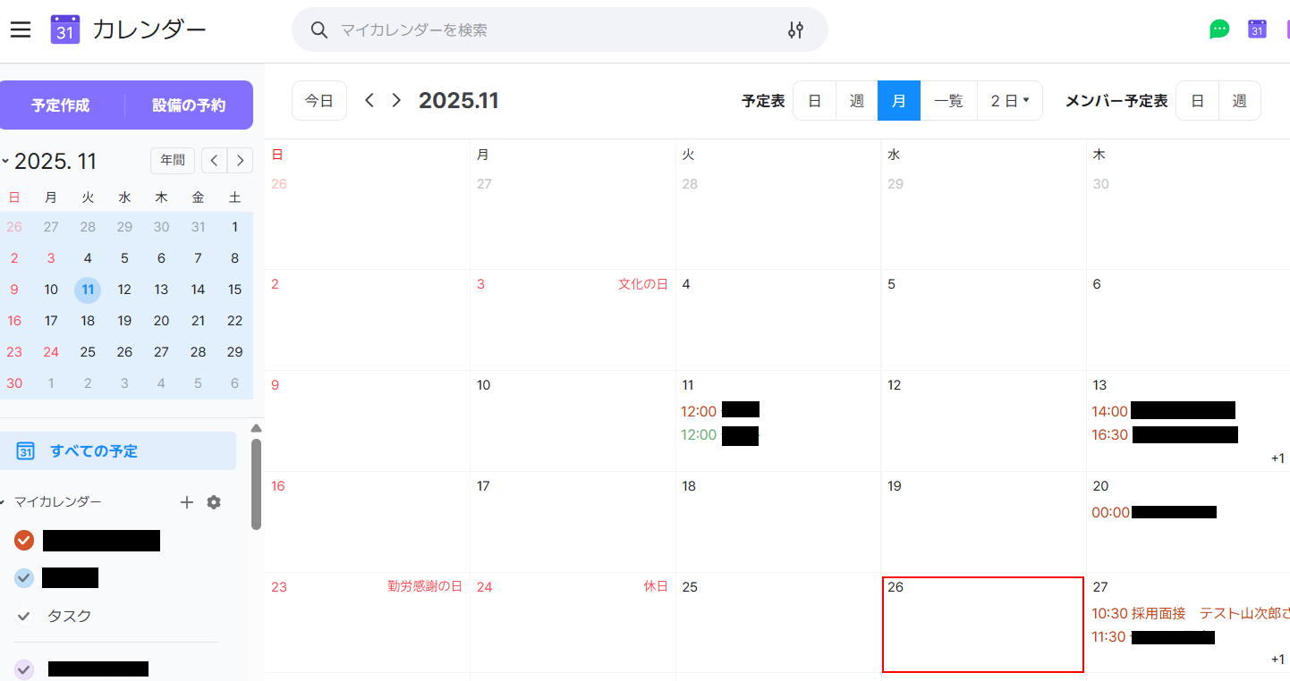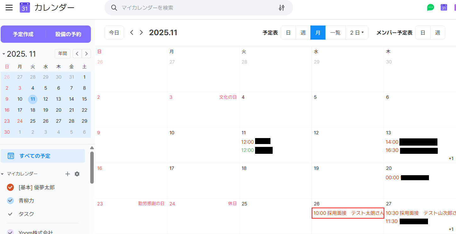 1 LINE WORKSのカレンダーにテスト用の予定を作成しておく テスト用に削除してもよい予定を作成しておきましょう。 今回は以下の予定を作成しました。