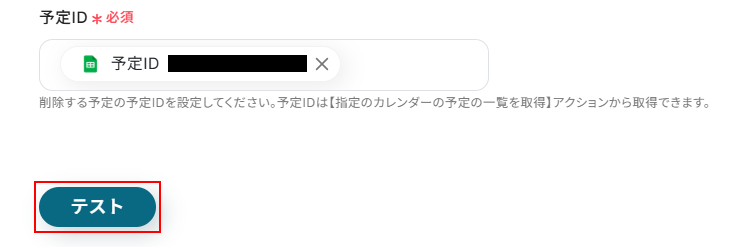 ここまで設定できたらテスト をクリックしましょう。 ※テストをクリックすると、実際に予定が削除されます。