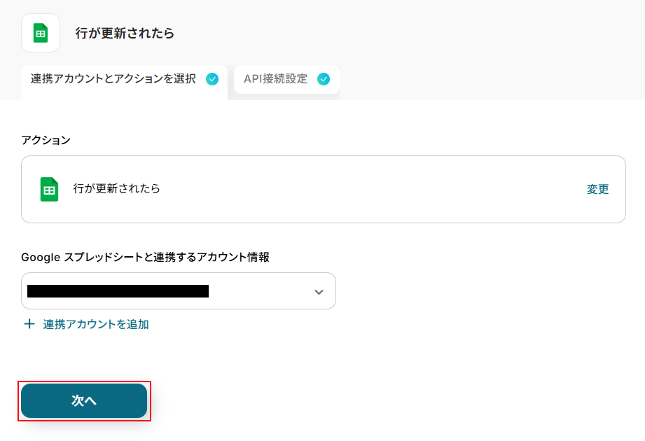 ステップ3:Google スプレッドシートの行が更新された際の設定