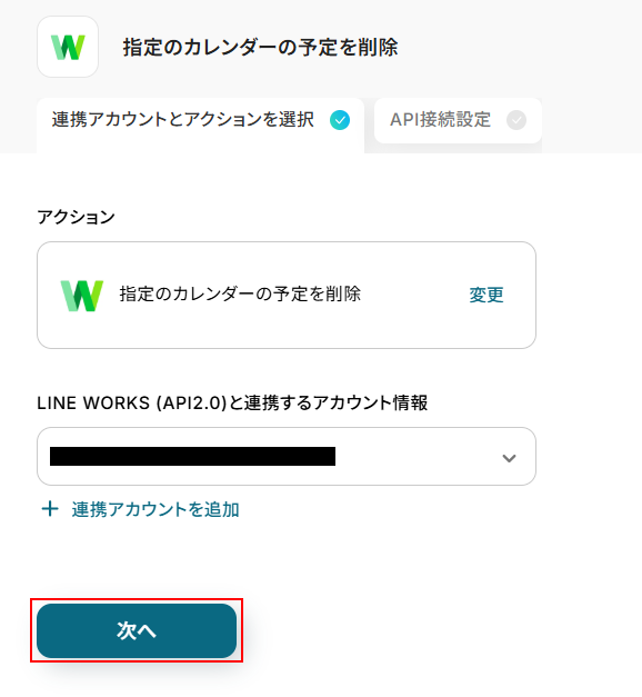 ステップ4:LINE WORKSの指定のカレンダーの予定を削除する設定