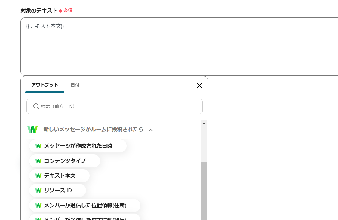 先に連携をしたLINE WORKSのアウトプット情報を引用できるので、テキストなどの作成に応じて引用してください。