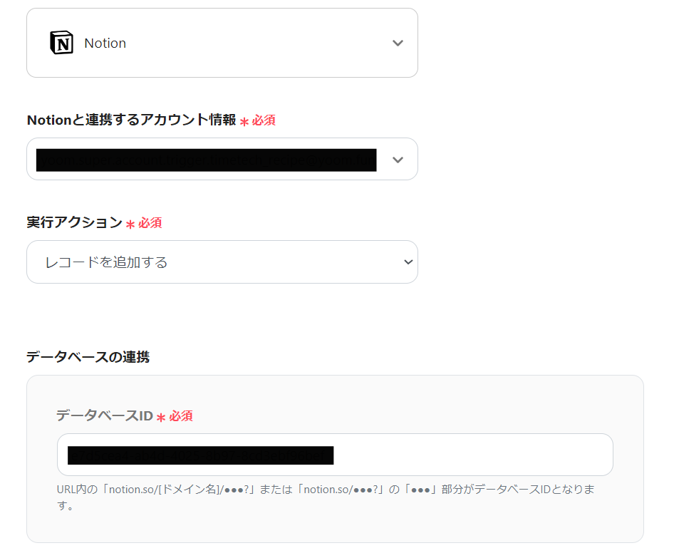 ・Notionのオペレーションの設定情報を任意の値に置き換えてご利用ください。