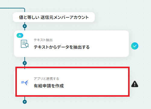 この設定で特定の従業員だけの投稿を検知して、有給申請を作成できるようになります。