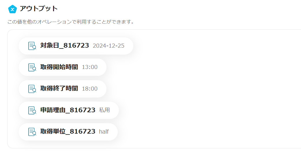 今回のフローでは、「有給申請を作成」オペレーションを組み込んでいますが、有給以外のオペレーションに変更することも可能です。