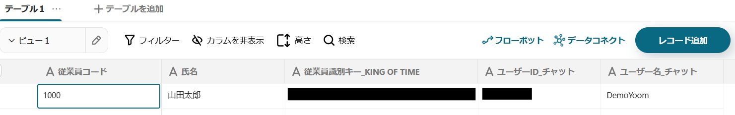 Yoomのデータベースにテスト用として、従業員リストを作成します。